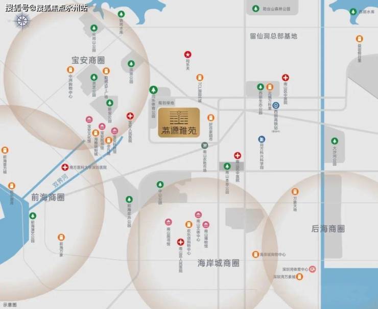 前海深港合作区(西南向约4km):定位国家战略性门户枢纽,未来将打造成世界级城市新中心,规划就业人口约65万人,居住人口15万人。