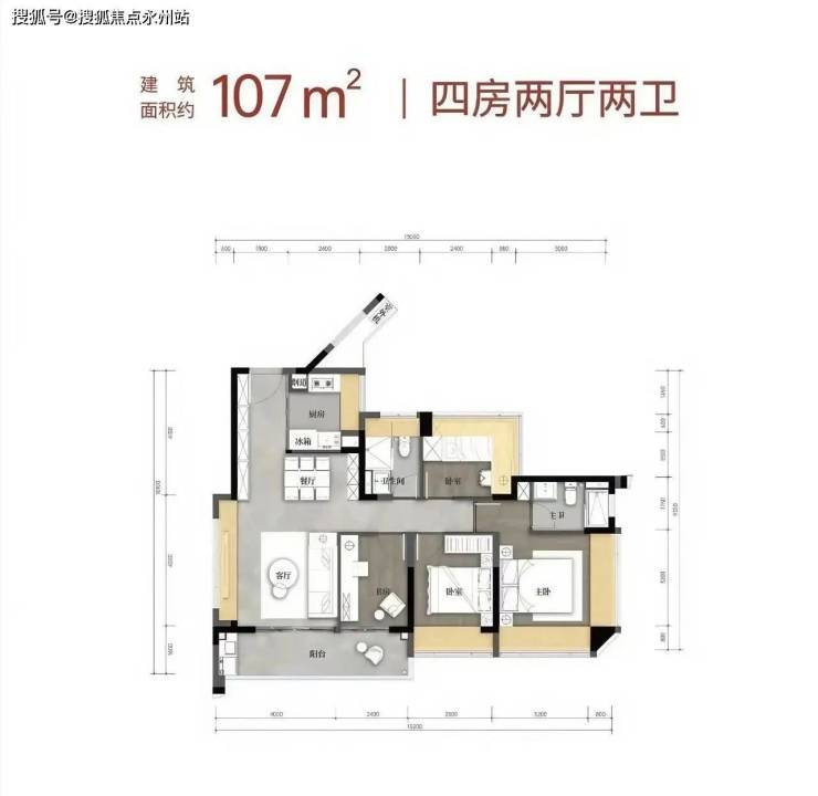 107㎡四房两厅两卫(横厅设计)