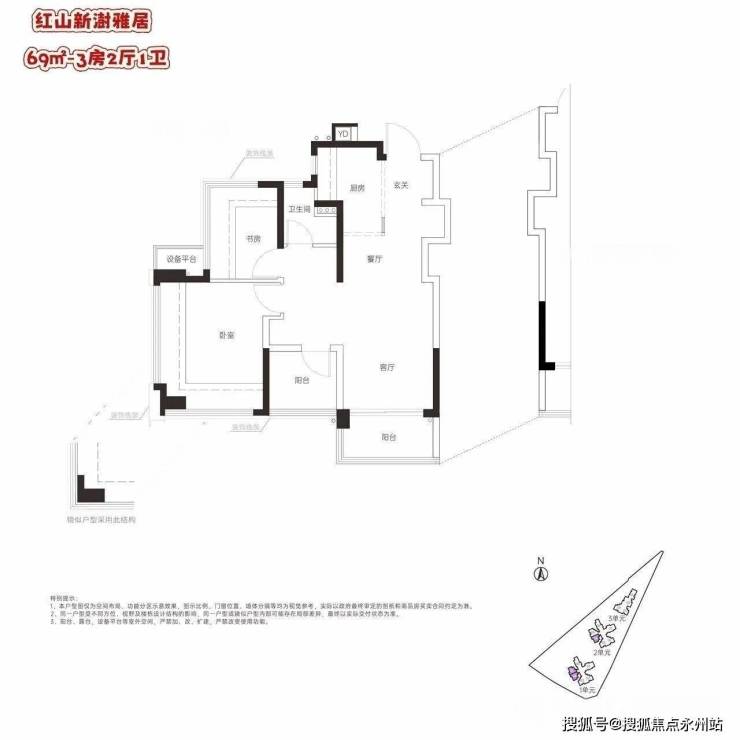 『联发·红山新澍雅居』产品包含建筑面积约69-72-78-80-84-99㎡三至四房,涵盖6个面积段,细分7种户型,横厅竖厅都有。
