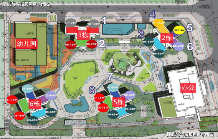 小区内部采用了下沉式广场的设计手法,层层跌落,形成了视觉开阔的效果。未来将形成繁华的地下街区,项目主推79~128㎡精装3~4房,共803套,套内小于90平727套,占比90.54%(未含回迁房)