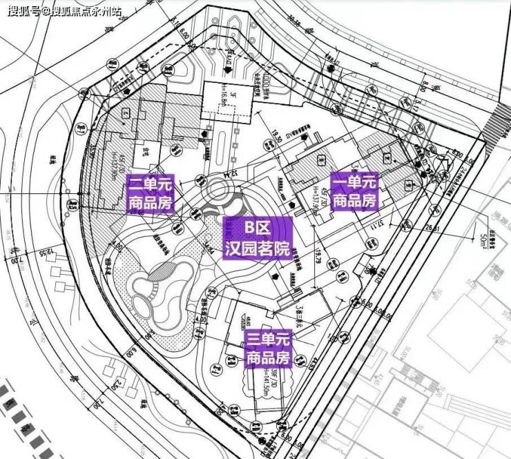 B区容积率6.14,住宅建面62490㎡,无商业配套,机动车位450个。由3栋三个单元及裙房组成,其中一二单元层数45层,三单元层数39层,总户数474套,套内面积小于90㎡的有369套,占比77.85%,均为商品住宅