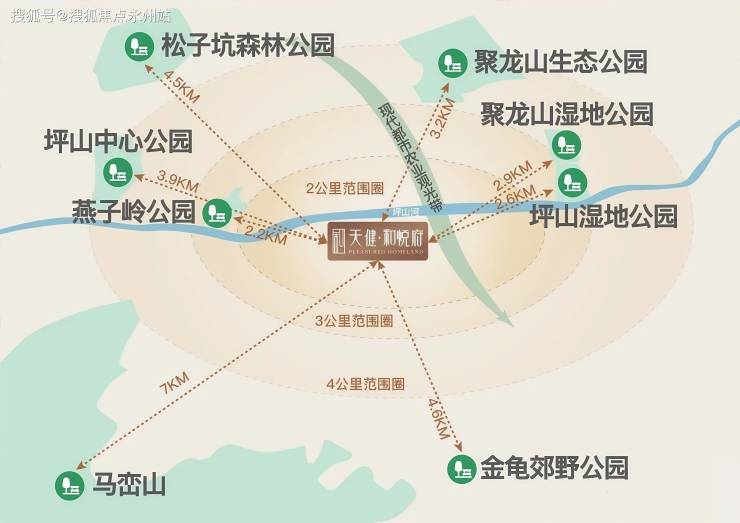 生态矩阵:1.6km 坪山河滨水景观带(规划亲水步道)5km 直达燕子岭生态公园(省级森林公园)社区内打造 3 万㎡森系园林,最大楼间距 60 米