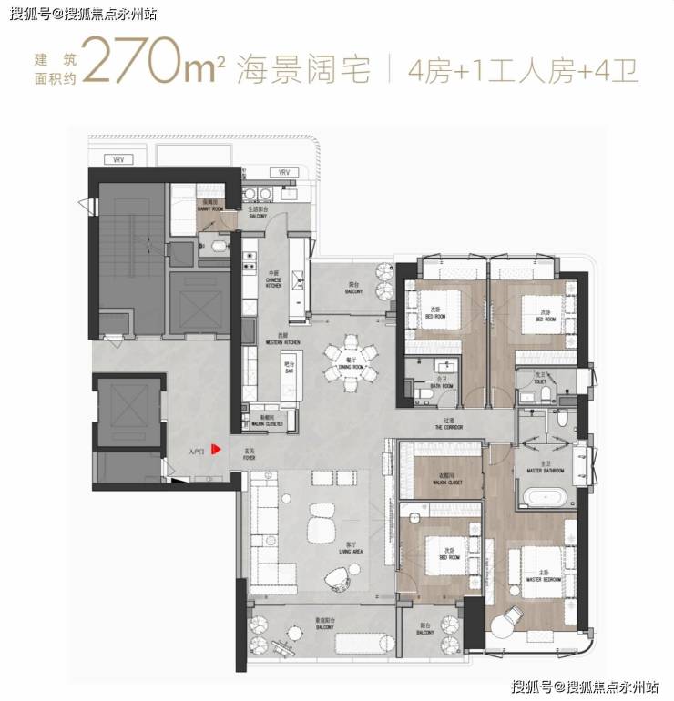 改善级(183-270㎡):强调空间仪式感,如专梯入户、双套房设计,匹配高净值人群对私密与尺度的双重需求。
