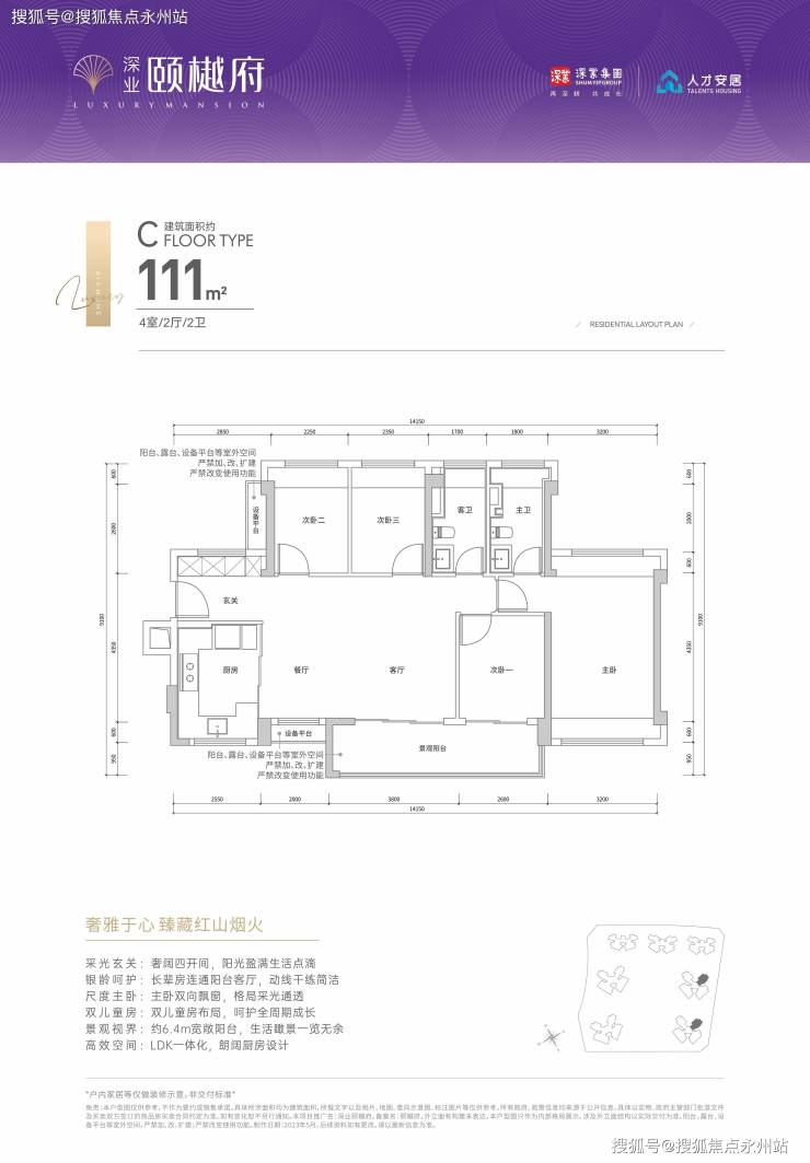 深业颐樾府二期《颐璟台》户型:建面约99-116㎡3-4房,品质雅宅!