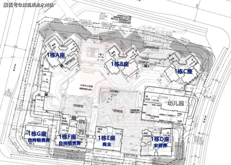 项目由6栋高层住宅围合式组成,总户数1592户,其中可售商品房约750套,安居房373套。1A(46层)、1B(46层)、1C(47层)为可售住宅,1D为安居房,1E为商寓,1F为自持物业。