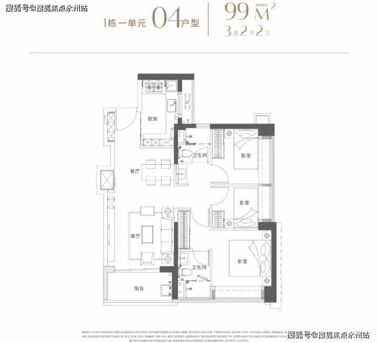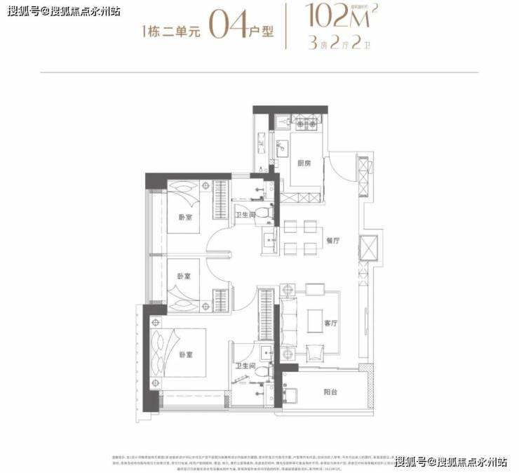 建面96-102平米:3房2厅2卫都是传统的竖厅,动静分区格局。