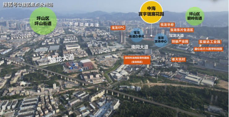 中海寰宇珑宸花园具体位于宝龙科技城片区东侧,龙岗与坪山两区交界处。项目周边主要为含盖生活服务、居住功能建筑。北面有在建的宝龙文体中心,东面为宝龙街道办事处,南面为悦龙华府、宝龙东片区生活区。