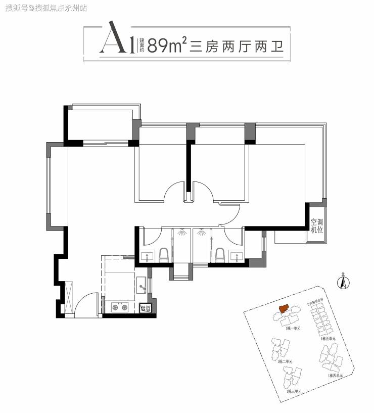 本次首推1栋1单元,共155套房源,面积有89m²的3房2卫,112m²的4房2卫户型,2梯5户设计。