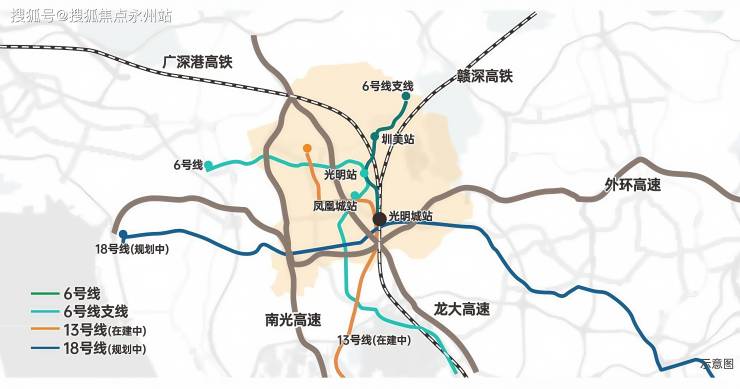 地铁:距6号线支线“圳美站”约900米、6 号线“光明站”约1.2公里,3 站可换乘 13 号线(在建),5 站直达光明城高铁站,19 站抵后海。