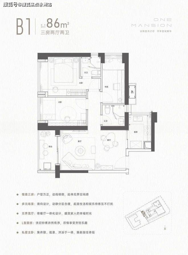 虽然深圳现在户型很“卷”,但壹湾府卷上加卷,建面约86㎡做了3房2厅2卫,约86㎡能做3房的项目不少,但能做出2卫的寥寥无几,壹湾府有什么神奇的“空间拉伸术”?