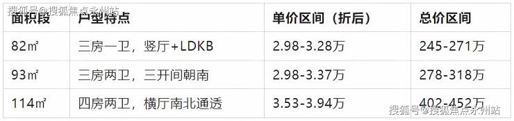 项目近期工抵房单位,折后均价3.25万/㎡,单价2.98-3.94万/㎡,总价在245-452万/套,主力产品还是82-93平的户型,平均单价3万/平。