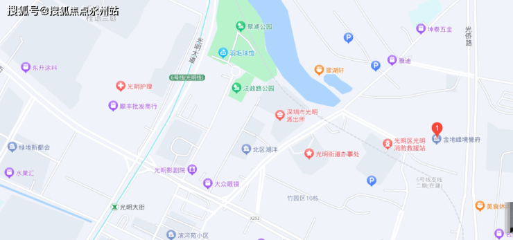 金地峰境誉府于光明区光侨路与径口路交汇处西北侧,临近在建的6号线支线二期光明小镇站,周边聚集了一些市政单位,比如光明派出所、光明街道办事处、光明消防救援站,办事方便。