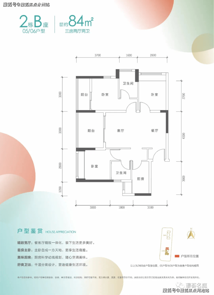 从户型图可以看,户型使用率上还是非常不错,建面约66-84㎡ 2-3房,该地块总户数为270户,也就是本次将首推的房源!
