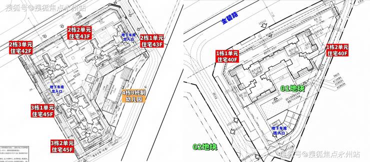 02地块:总占地面积约1.78万㎡,总建筑面积约19.7万㎡,计容建筑面积约13.7万㎡,容积率7.71,绿化率30%,共由5栋42-45层高住宅组成,分别是2栋1/2单元住宅43层,2栋3单元住宅42层,3栋1/2单元住宅45层,4栋配建1所9班幼儿园。
