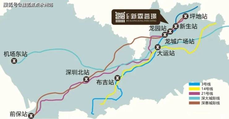 步行约600米地铁3号线东延线新生站(预计2025年通车),与地铁21号线(规划中)交汇,未来2站换乘深惠城际(前海至龙岗段已动工),7站深圳北、11站速达前海。(数据来源:深圳交通、深圳龙岗发布公众号、百度地图测量)
