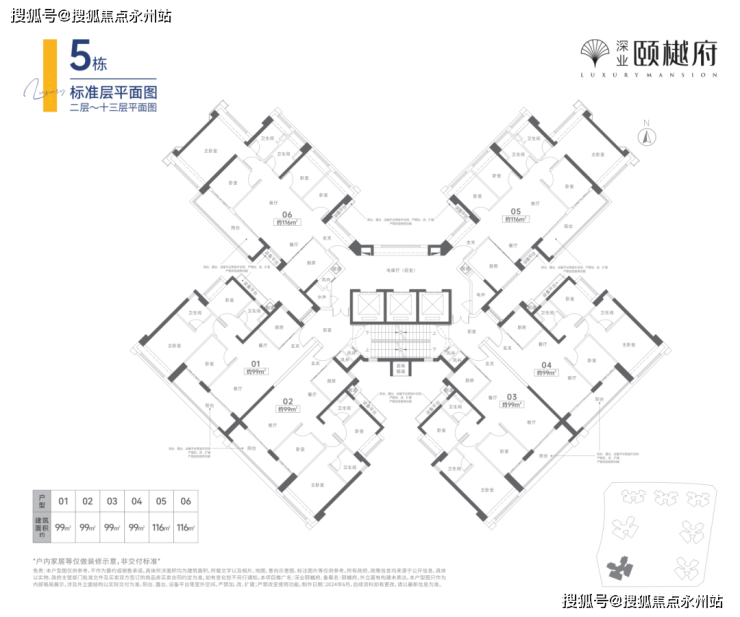 深业颐樾府二期《颐璟台》户型:建面约99-116㎡3-4房,品质雅宅!户型方正实用,户户朝南,舒适采光!宽景阳台揽胜云端,奢阔景观面!