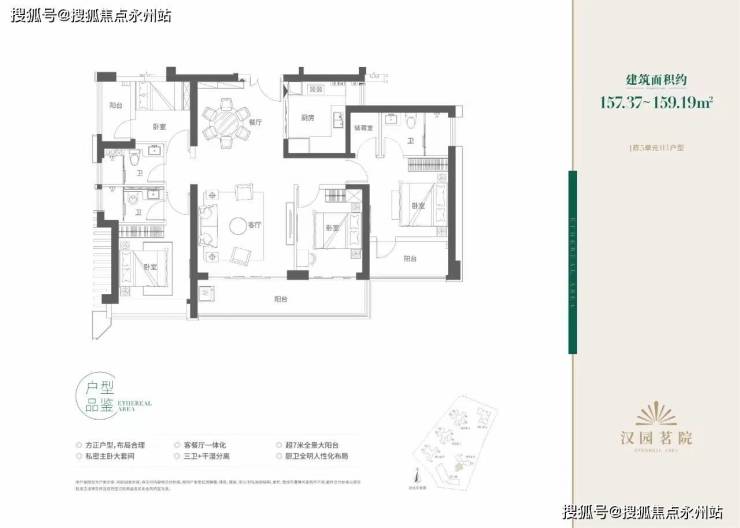 157㎡户型 四房三卫:竖厅结构,西南向,看塘朗山景,阳台设置的比较满,基本赠送做足了,双面宽主阳台,双套间,家里有老人住进来一点压力都没有,4个卧室有三个都有阳台,确实挺爽的,很有特色的户型