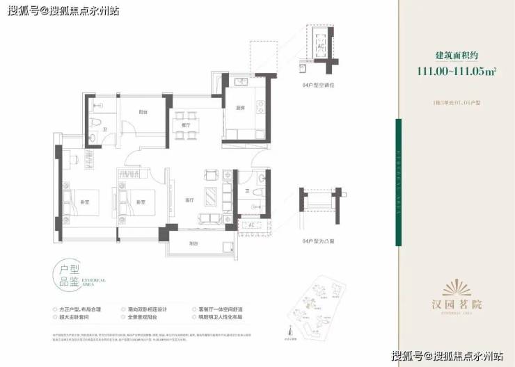 111㎡户型 三房两卫:户型竖厅结构,南北通,东南向,背面阳台可调整为房间,厨房很大,看起来快赶上次卧了,主卧也能南北通,这个设计蛮好的,面宽也足够大,主要看小区花园和塘朗山景