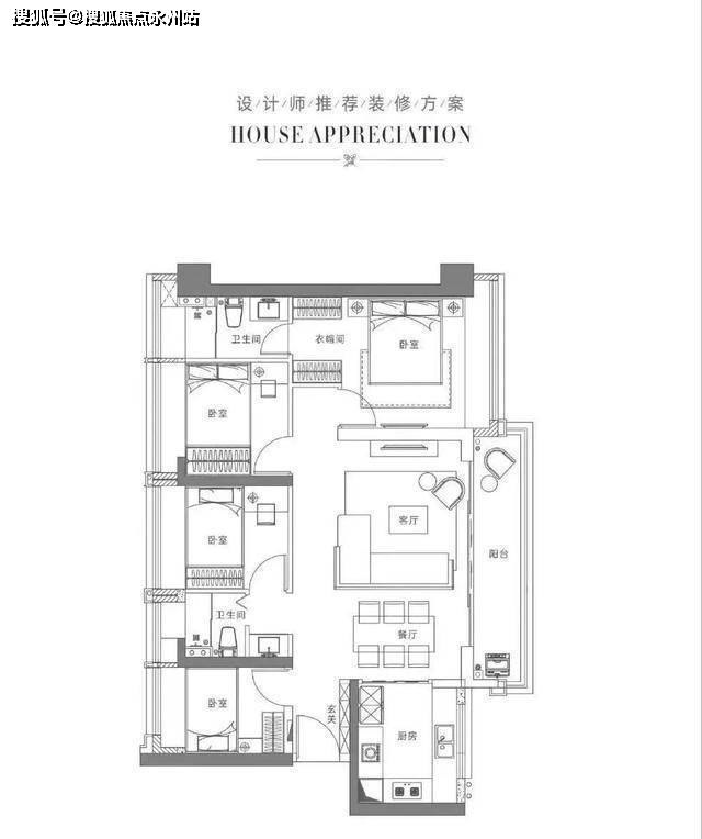 115-128平4房,偏改善置换,格局方正,非常阔绰。
