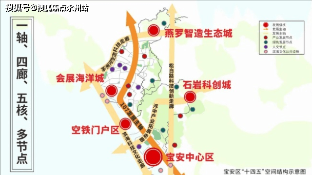 宝安十四五规划提出“一轴、四廊、五核、多节点”发展格局。项目所处片区是深中产业拓展走廊与石岩科创城汇聚轴点,将打造为宝安中部科技创新轴,塑造区域门户形象。