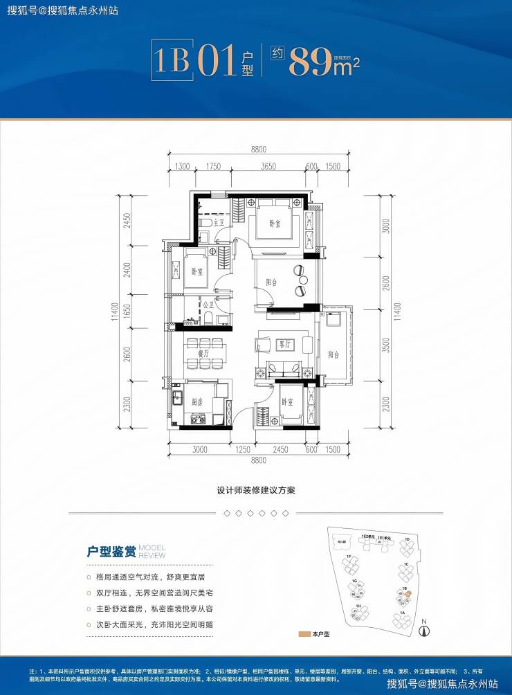 89㎡四房两厅两卫:折后总价317万起,单价3.56万/㎡起。