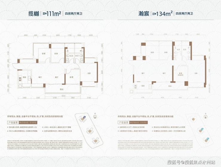 111-113㎡四房两卫:横厅南北通透格局,独门独户设计,客餐厅开间达6.2-6.25米,气场十足,亲友聚会也不拥挤。
