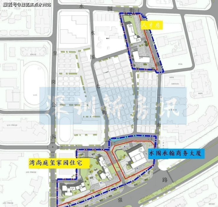 项目主要由三个地块构成,分别是位于水围街和水围二街西南交汇处的01-01;福强路和皇岗公园街东北交汇处的02-01和02-02两地块。