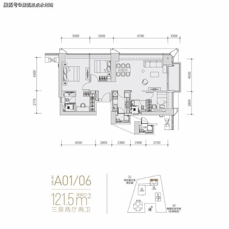 分布在02(东北向)和05(西南向),作为「富通九曜公馆」入门级户型,细看主卧空间很大,硬隔个2+1房还凑合。但无论是二房还是2+1,一卫其实并不匹配福田这个位置的主流群体。