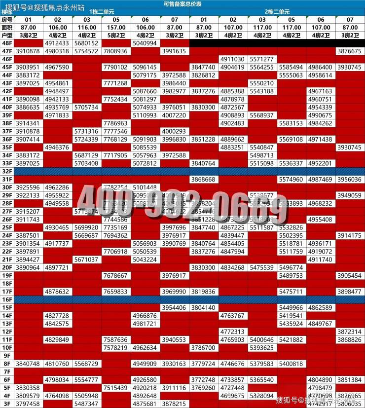 本次加推的2栋房源(2栋1单元和2栋2单元)涵盖建面约 87-157㎡的三至五房。