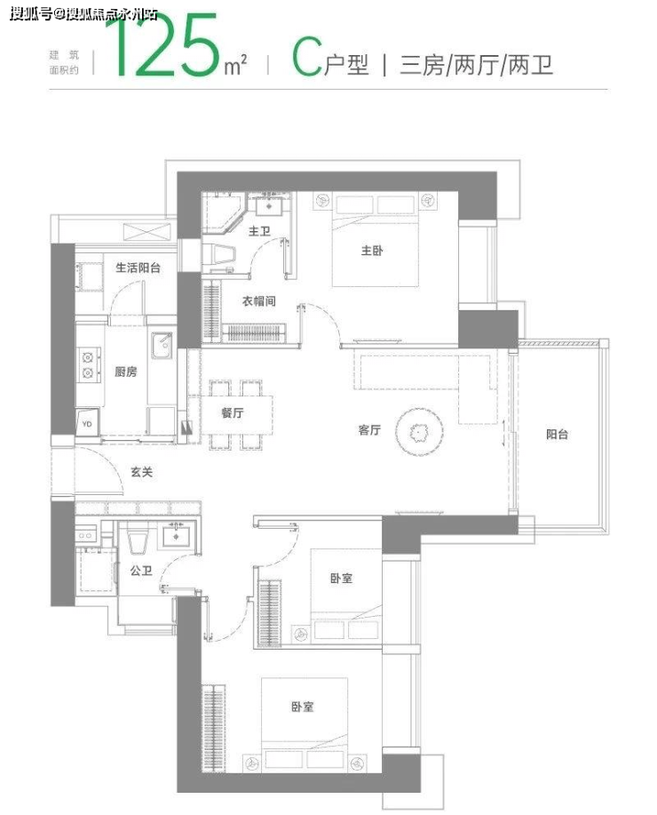 建筑面积约125㎡C户型
