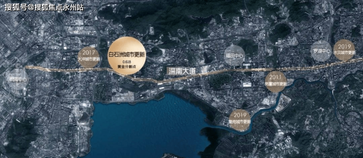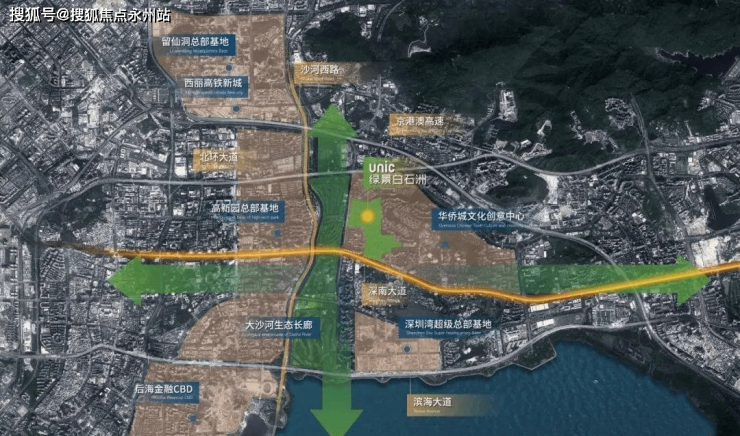 绿景白石洲位于深圳核心位置南山区的华侨城片区,深圳城市发展主轴——深南大道与大沙河创新走廊十字交汇点。