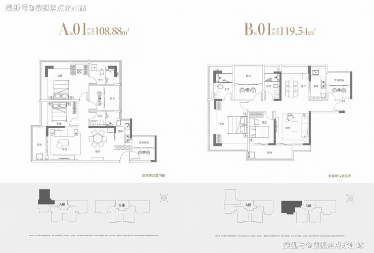 108-119㎡ 4房2厅2卫:独立家政间+中西双厨设计,主卧套房含衣帽间及明卫,次卧均带飘窗,例119.54㎡(B座顶配)双阳台设计,视野开阔。