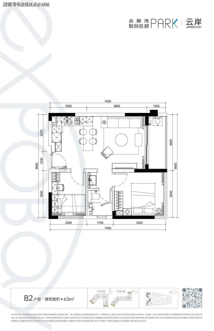 【B2户型:63㎡】房型:两房一厅一卫