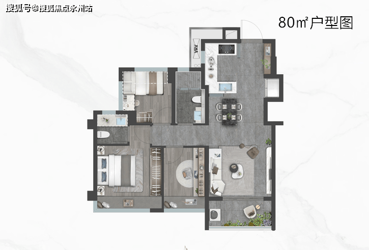 【御雲:80㎡的3房2厅1.9卫】竖厅格局,客厅开间3.4米,LDKB一体化,S墙设计预留冰箱位,U型半开放式厨房,创新式1.9卫设计,得房率:78.99%(不含赠送),有西北、西南、东北、东南4个朝向。