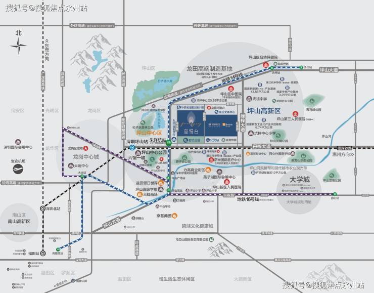 地铁16号线:连接大运新城、龙岗中心城、双龙、坪山高铁站及坪山新区等地区是东部组团内部的轨道线路。