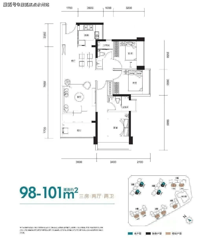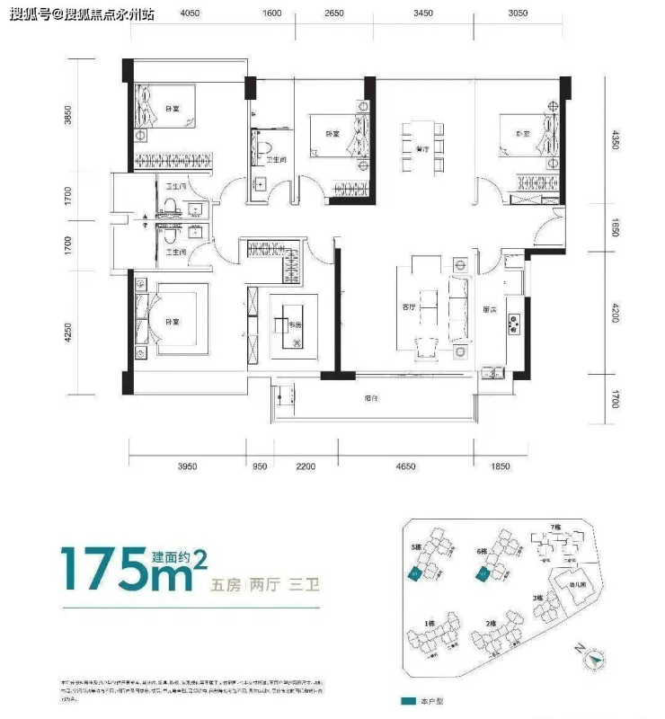 在售户型:95--99--105--112--132--139--143--175(3至5房)