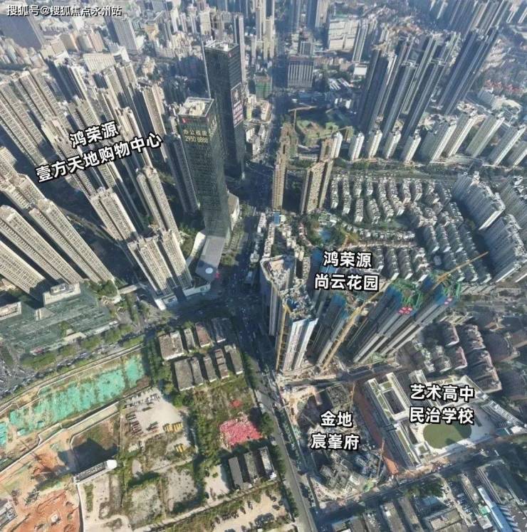 项目位于龙华区民治街道上芬社区(一路之隔为龙华街道景新社区辖区)龙华中心老城区,上芬社区工业路与人民路交汇处西南侧,毗邻龙华壹城中心三区,与壹方天地C区商业仅一路之隔,距离地铁五期规划的25/27号线交汇站步行约450米左右。鸿荣源尚云整体建筑色彩以深咖和米色为主,以玻璃幕墙搭配铝板线条组成,营造了明亮、轻盈、雅致的现代高端形象,颜值不亚于某些豪宅。