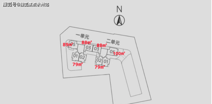 众福红山印位于龙华大道和民宝路交汇,占地面积约6000㎡,建筑面积约3.3万㎡,项目由1栋高层分两个单元住宅、商业裙楼配套组成,整体朝向为正南偏西,容积率约3.0,绿化率40.68%,总户数186套,面积段由79-89-100㎡的三房至四房组成;