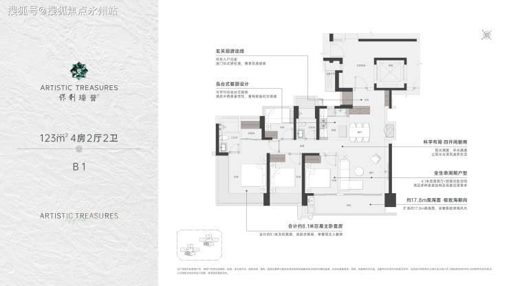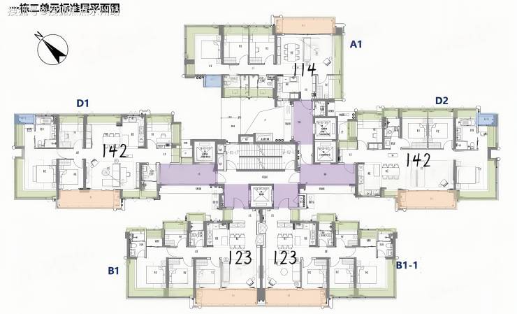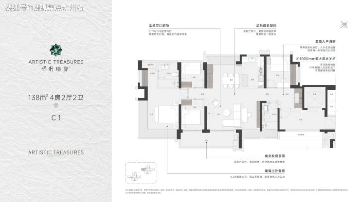 推出114-122-138-143㎡的4房户型,其中每户都有独立私家电梯厅赠送率都去到了100%左右。