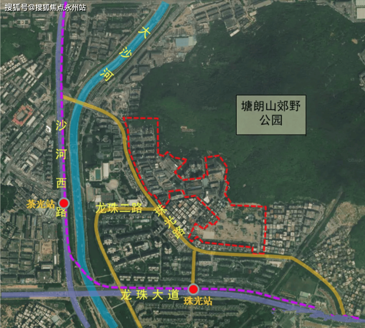 珠光村位于南山区沙河西路以东、龙珠大道以北,北靠塘朗山,西邻大沙河,距离留仙洞总部基地约1公里,位置较好。