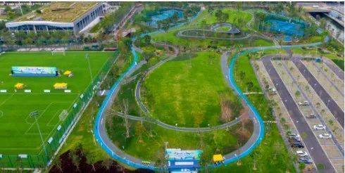 前海运动公园占地面积7.14万平方米,园中布局了3个篮球场,2个网球场、1个标准足球场、1400米的环形跑道及游园休闲步道等,选用一流材料设施,如足球场全部采用天然草,环形跑道采用专业工艺打造高标准塑胶面层。
