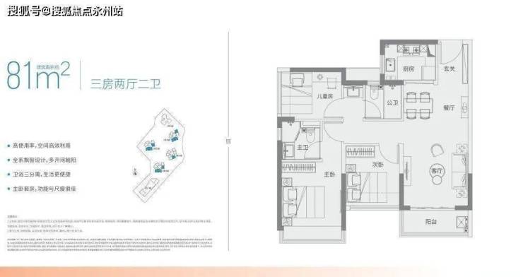 亮点1:纯三房社区、整体设计可圈可点,建面约71㎡、81㎡的3房产品,与年轻家庭共同成长,满足不同阶段需求。