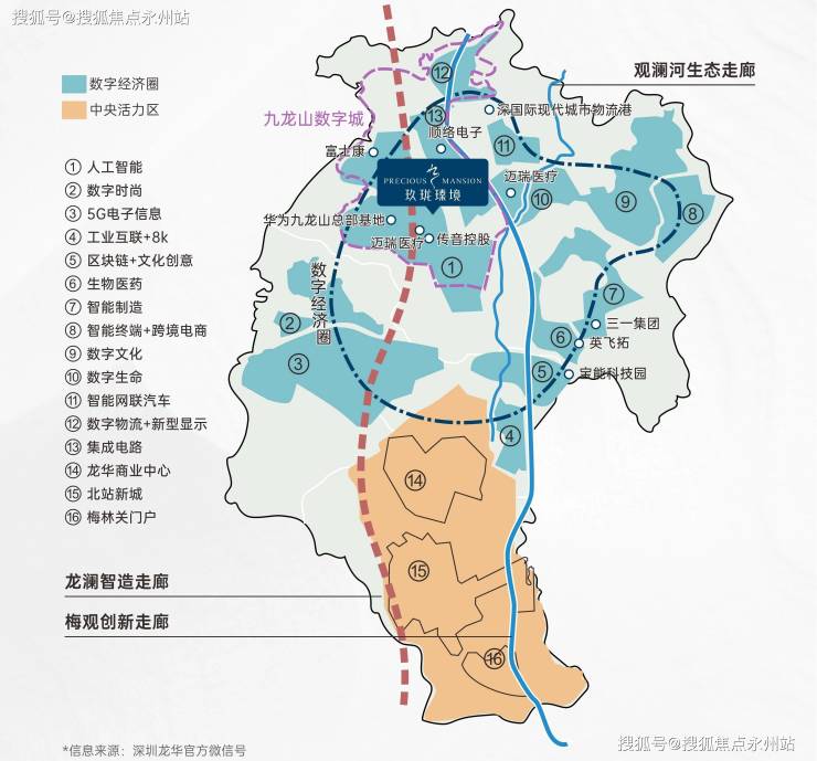项目地处九龙山数字城核心区,紧邻华为九龙山总部基地,周边聚集了富士康、华润、迈瑞医疗等龙头企业,产业人口密集,发展潜力显著。片区定位为“智能制造主导的数字经济集聚区”,规划有18号线、22号线(建设中)及深广中轴城际等轨道交通,未来交通网络将进一步完善。
