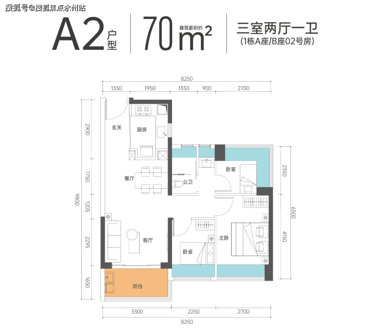 譬如可实现建面约70㎡及80㎡的带玄关三房、建面约100㎡的带主卫四房。