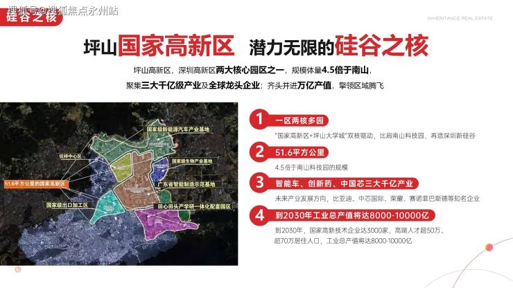 坪山高新区,定位为国家级高新区,规划面积约51.6平方公里,相当于5-6个南山科技园,是全市产业空间储备最大、集中连片区域最多的区域之一,产业施展空间大,发展潜能可期。