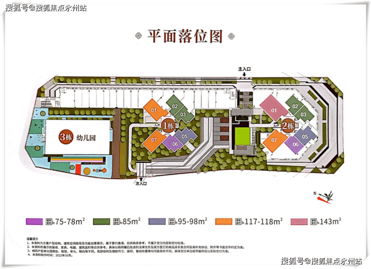 项目占地不大,仅9866.58㎡,由3栋建筑组成,其中1、2栋为商住楼共42层;3栋为6班幼儿园4层。规划总户数448户,其中户型套内建筑面积<90平410户。除去回迁,还剩余300多套。