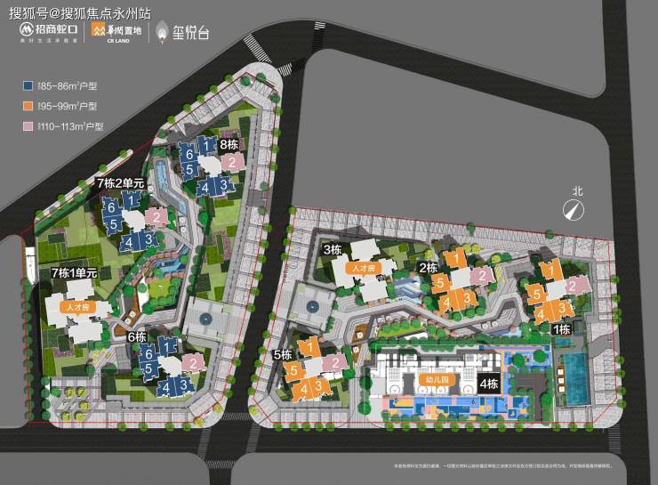 项目共有9栋,总户数1580户,其中1.2.5.6.8栋是商品房住宅,3栋和7栋1单元是人才房,4栋是一所12班幼儿园,规划约1万平商业。