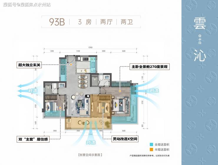 东莞滨海润府 II 望雲作为滨海湾新区首个“新规户型”标杆项目,通过空间重构与设计创新,打造出建面约 93-139㎡的三至四房产品,使用率高达104%-110%。以下为各户型详细解析: