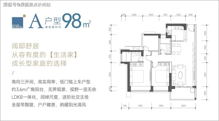 98㎡三房:三开间朝南,主卧套房设计,总价650-700万,填补南山刚需空白。