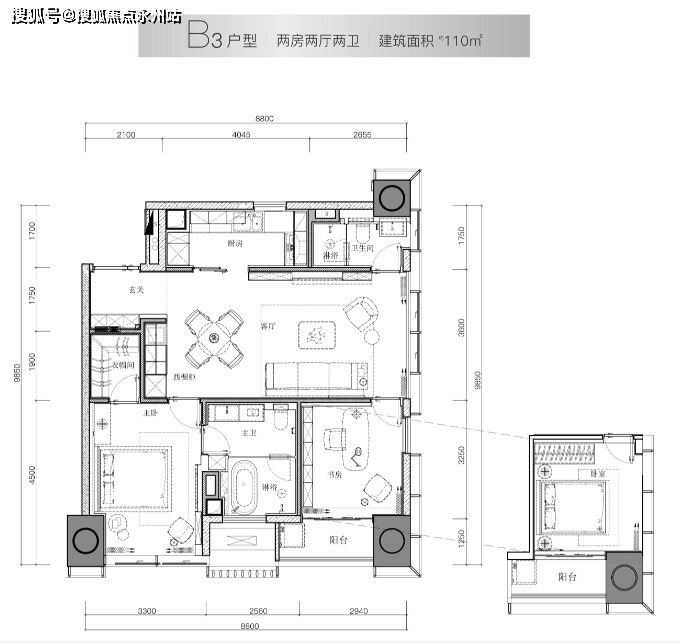 【面 积】约90-160㎡(1-3房奢阔公寓)